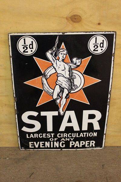 Vintage Star News Papers Pictorial Enamel Advertising Sign..Nice Honest Sign.. 79cm x 56