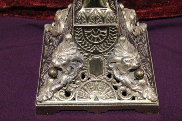 Victorian Oil Lamp Cut Glass Font Original Green Shade + Burner on a brass Corinthian base C1890