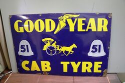Early Good Year Cab Tyre Pictorial Enamel Sign. Good clean original sign.. 91cm wide X 61cm high,