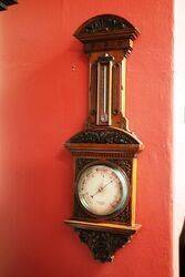 Large Late Victorian Antique Decorative Carved Walnut Aneroid Barometer. R & J Beck ltd 68 Cornhill London. 105cm high x 32cm wide.