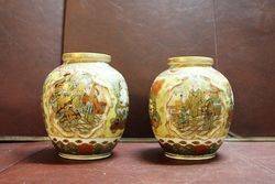 Pair Of C19th Satsuma Vases Hand Decorated. A sought after Collectors Item 16cm tall