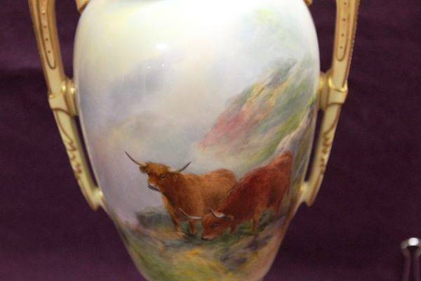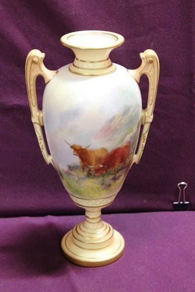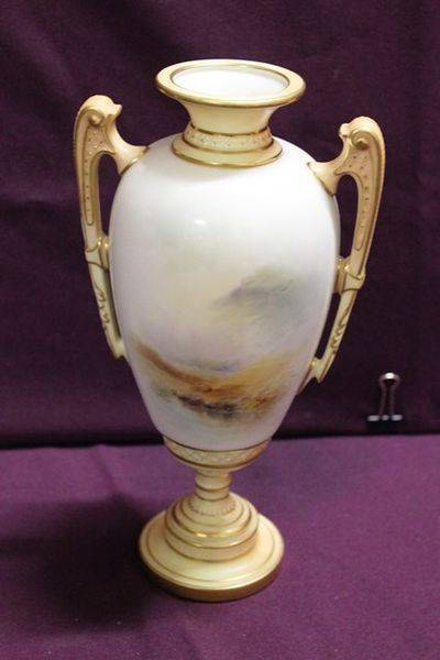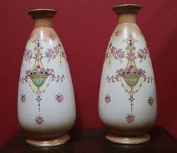 Pair Of Early 20th Century Crown Devon China Vases 14cm wide x 31cm high