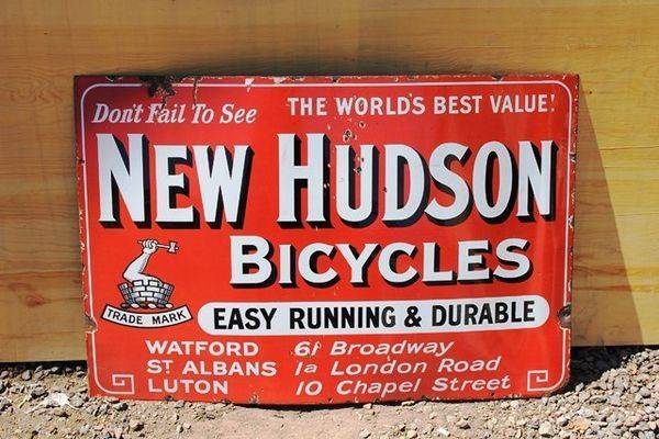 Wonder Cycles Post Mount Double Sided Enamel Sign. Great colours. 71cm tall 54cm wide