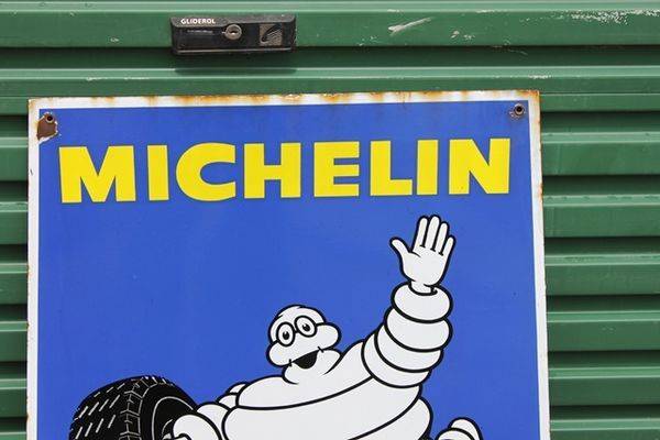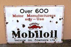 Early Gargoyle-Mobiloil Vacuum Oil Company Enamel Sign. Over 600 Motor Manufactures Say-Use Gargoyle-Mobiloil. 114cm wide x 76cm high.