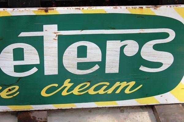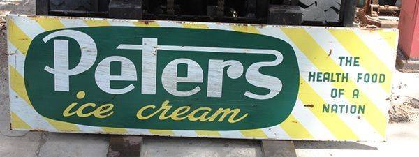 Early Vintage Cremier Cream Ices Sold Here Depicting a Penguin Pictorial Enamel Sign. NO TOUCH UPS. 51cm wide x 61cm high.