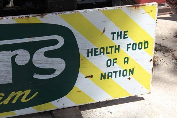 Kozitos Cooked Maize Pictorial Enamel Sign. Great early farming subject, 126cm tall 76cm wide