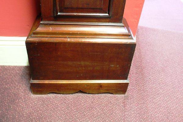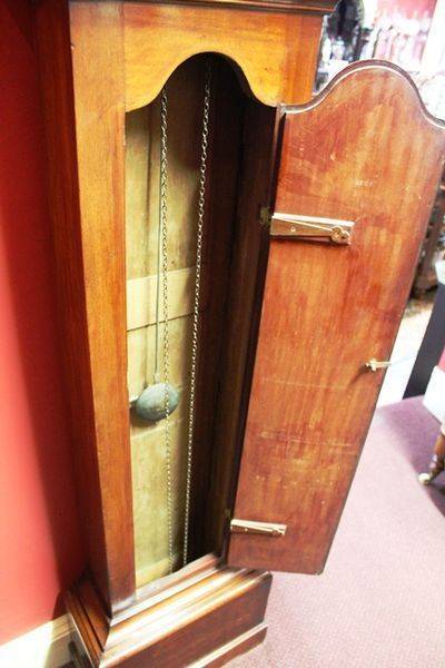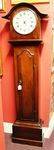 A good quality early 20th century BRUFORD & SON British Grandfather clock. 8-day weight driven movement with quarter hour Westminster & Whittington chime , Brass dial with Silvered chapter ring. Mahogany case with inlaid detail features molded