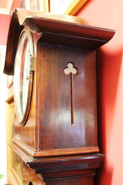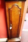 Victorian Oak Longcase clock with Mahogany cross banding, Painted face 8 day movement, by Tho' Tuxford 1849-76.