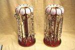 Antique Rare Pr Ruby Glass Lustre Vases. One Minor Repair. 29cm high.