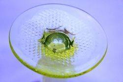 Georgian Engraved Barrel Bowl Knop Stem Drinking Glass .. CHIP.