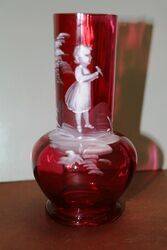 Small Antique Ruby Glass Mary Gregory Vase. 15cm high.