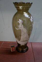 A Stunning & Large Victorian Mary Gregory Amber Glass Vase in Very Nice Condition. 45cm high..