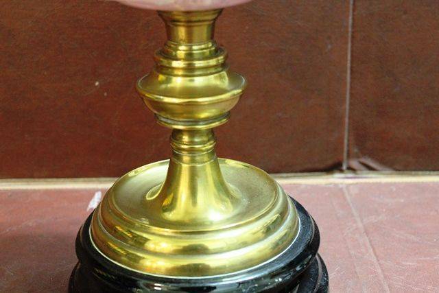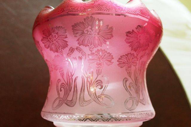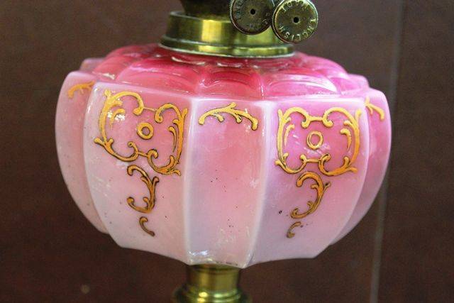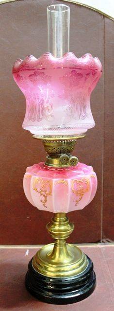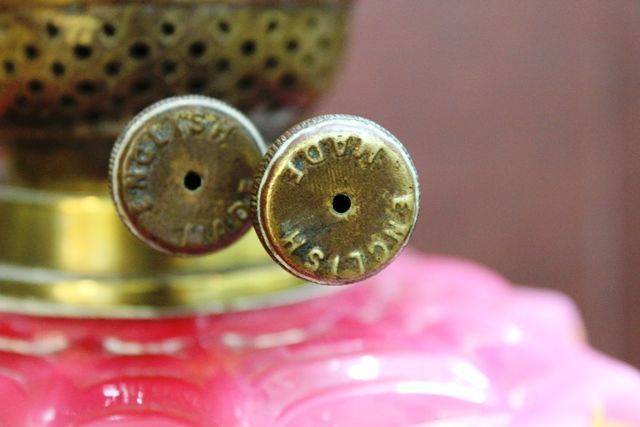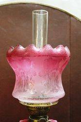 A Lovely Late Victorian Ruby Glass Double Burner Oil Lamp. With original ruby shade, a very nice all original lamp.