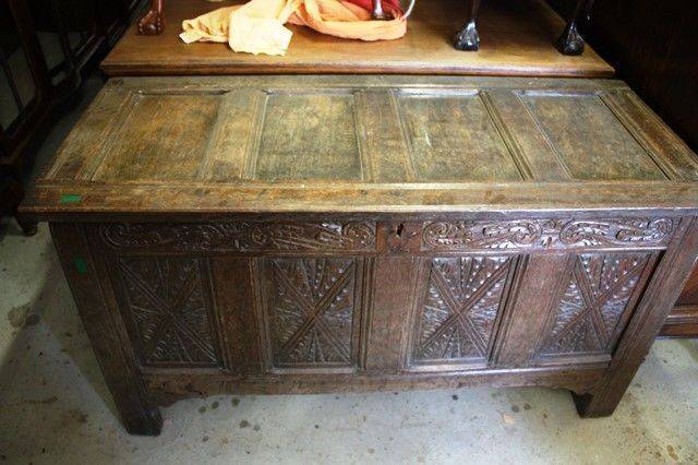 C18th Antique English Carved Oak Coffer.Great size for serious storage. 75cm tall 138cm wide 60cm deep