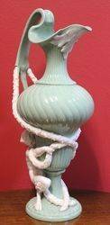 Lovely Quality Satsuma Japanese Porcelain Boat with 2 Sailors. 19cm high. 2 BOATS AVAILABLE, SEE ALSO FC1449
