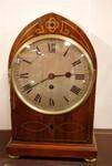 19th century time only fusee 8 Day clock. brass inlaid case silvered dial