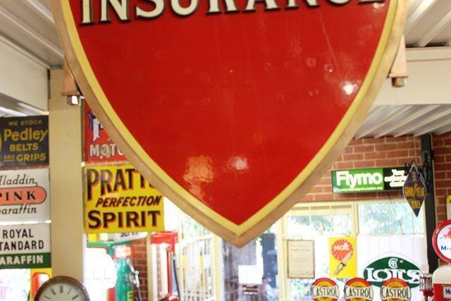 This Lovely Royal Insurance Shield Double Sided Enamel Sign has all Raised Lettering and is Fitted into a Bronze Frame.. Wonderful Example and Extremely Heavy.