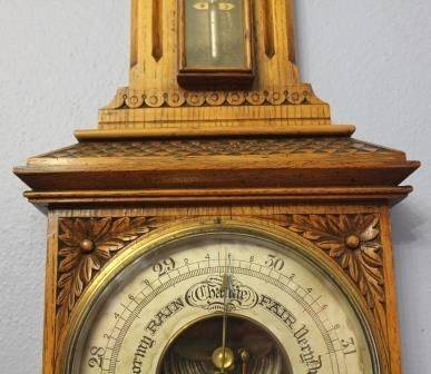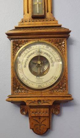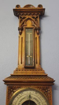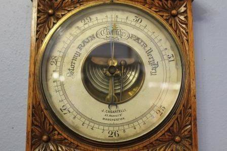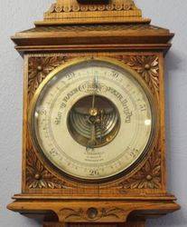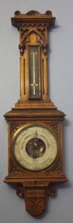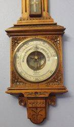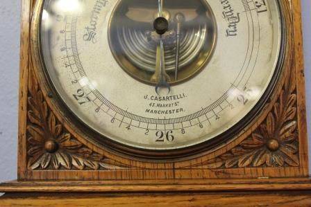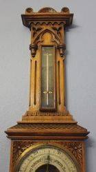 Nineteenth Century Oak Gothic Carved Barometer with Thermometer. Maker - Casartelli of Manchester