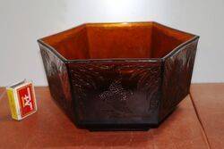 Sherdley Art Deco Hexagonal Amber Glass Kingfishers Bowl. Some ware rubbing to the inside of the base.