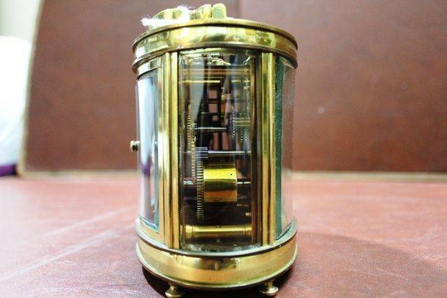 A Quality Antique 19th Century French Brass Repeater Carriage Clock with Original Leather Travelling Case & Key..