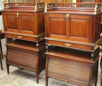 A Rare Pair of Late Victorian Fall Front - Tambour Door His and Hers Writing Desks