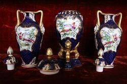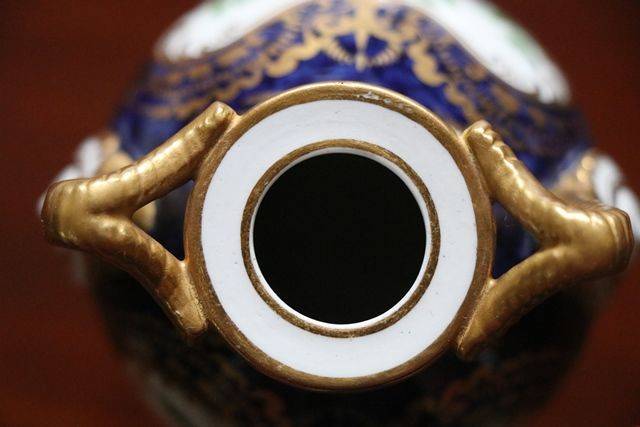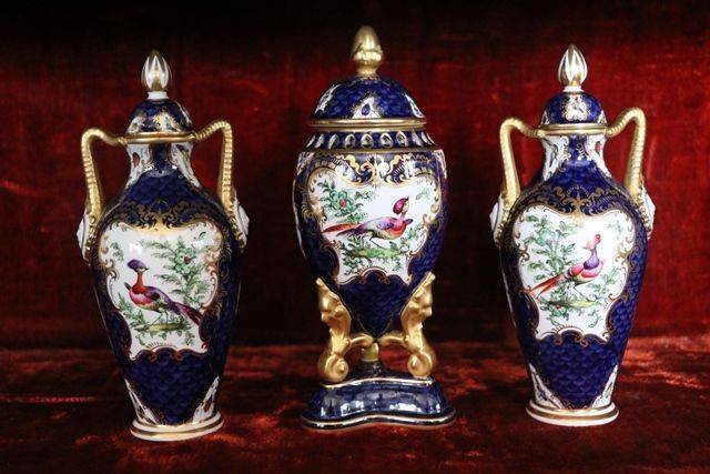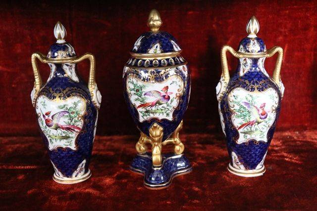 Royal Worcester Blue Ground 3 Piece Garniture of Vases,C1895