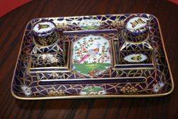 Superb French Porcelain Hand Decorated Ladies Desk Set Minor Hairline to Lid 26 cm wide x 7 cm high x 20 cm deep