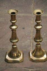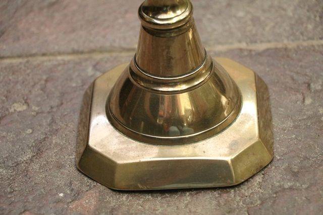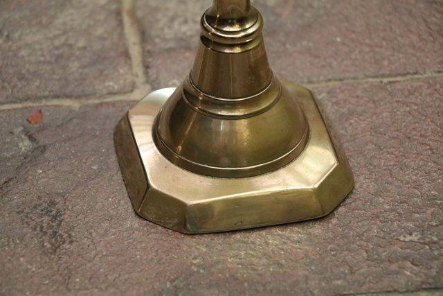 Large and Tall C19th Banquet oil lamp on rare brass corinthian column with brass font original double burner and glass shade. 105cm high.