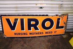 Vintage VIROL Nursing Mothers Need It Enamel Sign. 198cm wide x 71cm high.