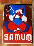 Early SAMUM Cigarette Paper Pictorial Advertising Enamel Sign. This is a wonderful German pictorial sign and in original condition. 49cm x 65cm.