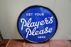 Vintage Players Please Round Rolled Edge Enamel Advertising Sign. 59cm dia. Great Colour & Gloss.