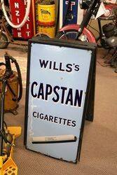 Pair of Antique Wills Capstan Cigarettes Enamel Signs Mounted in Original A Frame Display Stand, Very Rare and Very Original.. Nice Condition. 49cm wide x 94cm high.