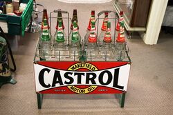 Vintage Castrol Bow Tie Enamel 12 Bottle Oil Rack. Genuine 6 pint & 6 Quart Embossed Bottles, Genuine Tin Tops with Genuine Dust Caps. Enamel sign in very good condition.
