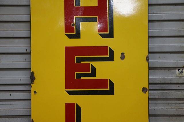ID: SA206ASphinx Benzine ( Vacuum Oil Company ) Large Convex Enamel Sign 101cm tall 151cm wide