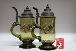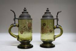 Victorian 2-Tier Etched Glass Table Centre Piece 52 cm high x 21 cm diameter