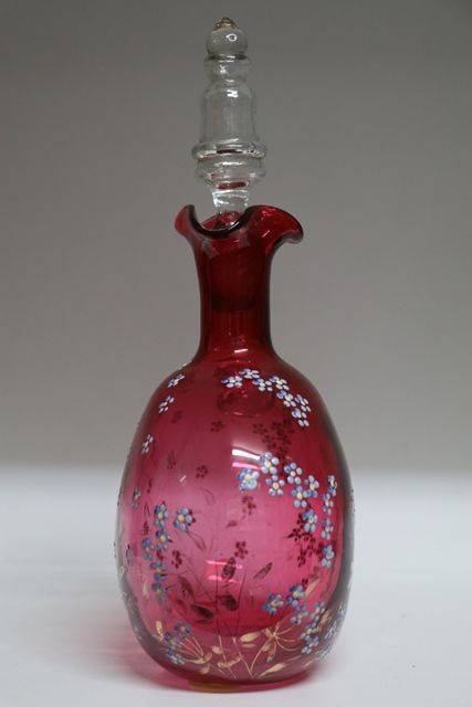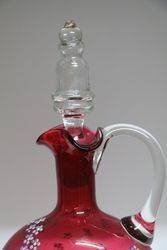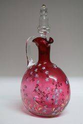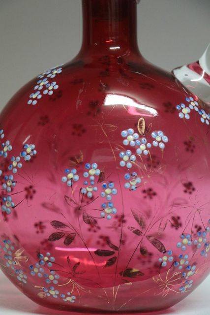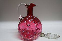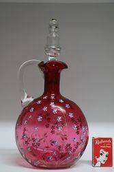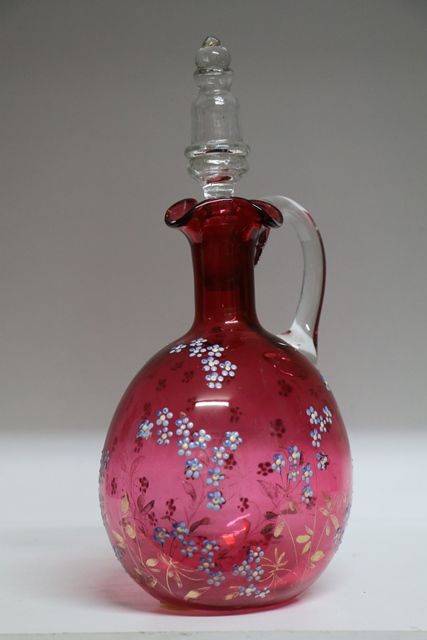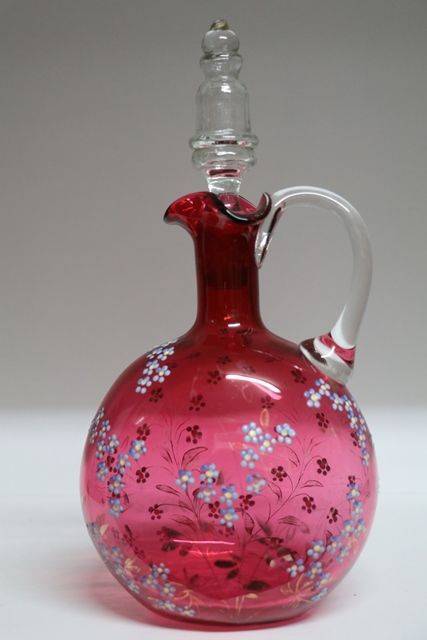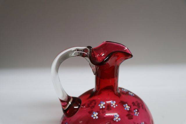 2 Piece Antique Hand Painted Moser Ruby Glass Jug & Tumbler. 15.5cm high.