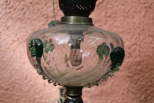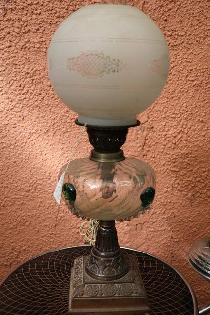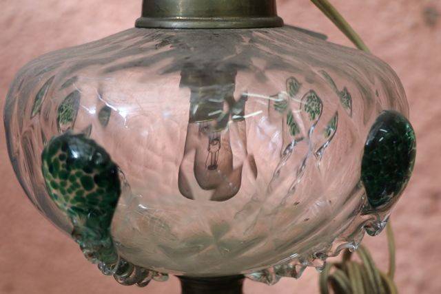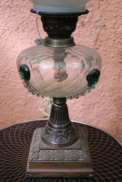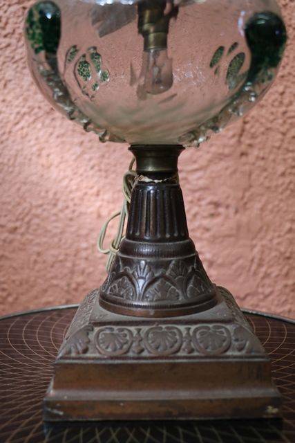 Large Victorian Banquet Lamp Green Font Vaseline Shade Brass Column