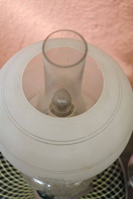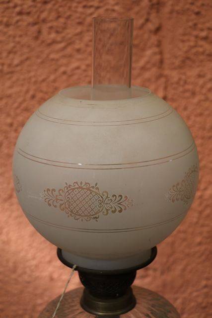 Exceptional Victorian Oil Lamp Cut Lead Glass Shade + Font Silver Plate Column