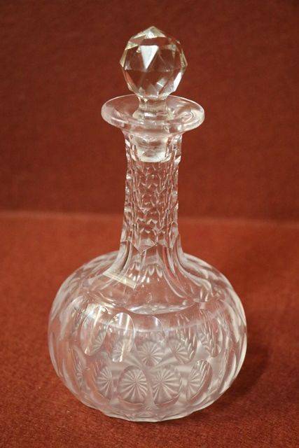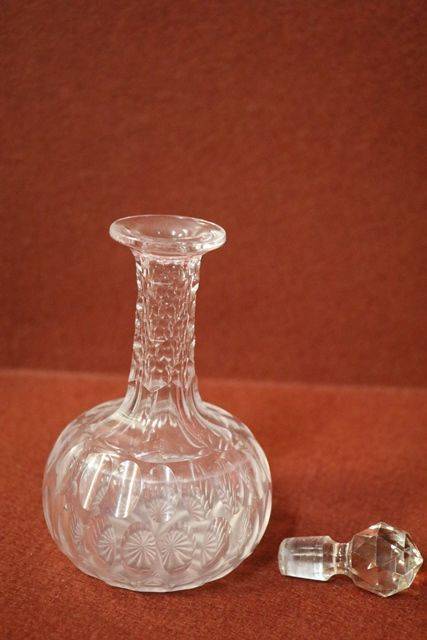 Antique Edwardian Leaf Engraved Glass Custard Cup