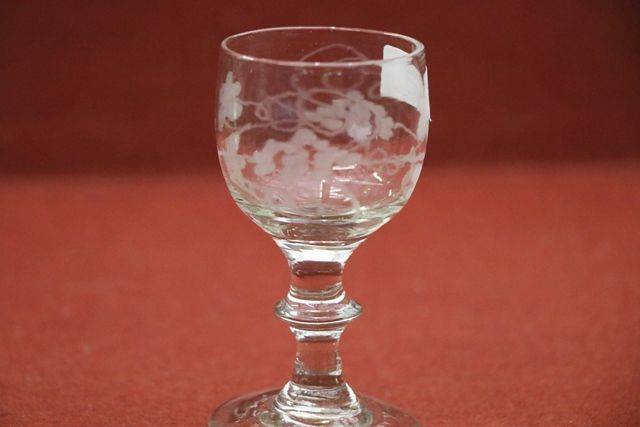 Antique Edwardian Leaf Engraved Glass Custard Cup