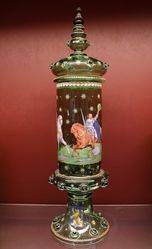 Superb 19th Century German Hand Decorated Lidded Vase.. Some Repair Sold As Found