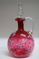 Antique C19th French Hand Decorated Ruby Glass Wine Jug & Stopper.