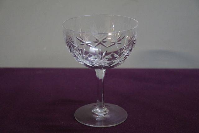 Antique Round Funnel Bowl Glass on Centre Cut Knop Stem.
