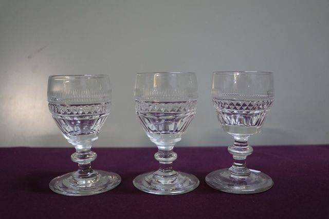 Antique Tapered Bucket Cut Bowl on Centre Knop Stem Drinking Glass. 2 AVAILABLE