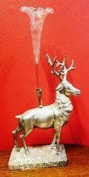 ID: ANT604Victorian silver-plated epergne in the figure of a stag with etched glass trumpet. C1870 to 1880. 46 cm high, 18 cm wide, 12 cm deep. Trumpet length 28 cm.