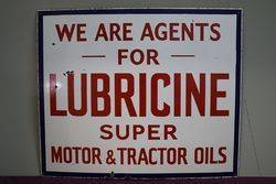 ID: SA1803Lubricine Super Motor & Tractor Oils Agent Enamel Sign. Lovely Clean Sign with Great Gloss. 61cm wide x 51cm high