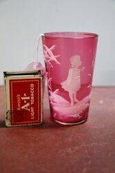 Antique Ruby Glass Mary Gregory Tumbler. #