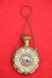 ID: S176Antique Milk Glass & Brass Fillagree Scent Bottle. Lovely Example.