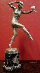 Stunning Art Deco silver bronze figure with ivory ball Signed R Tuboh, dated 1930 33 cm high, 11 cm wide, 18 cm dep