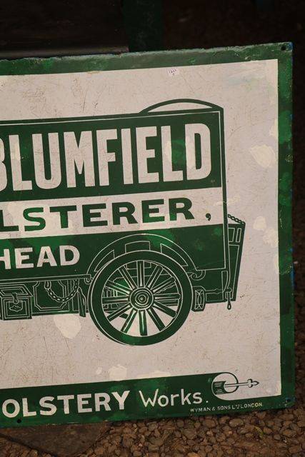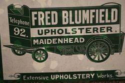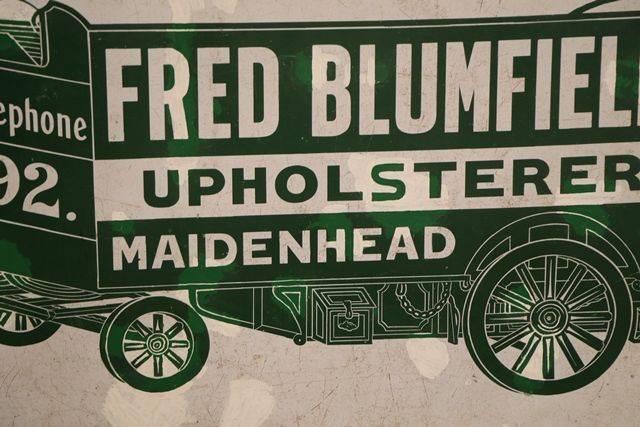 Very Early C20th Fred Blumfield Upholster Maidenhead Pictorial Enamel Advertising Sign. Has had some amateur touch ups. Deserves to be professionally restored..